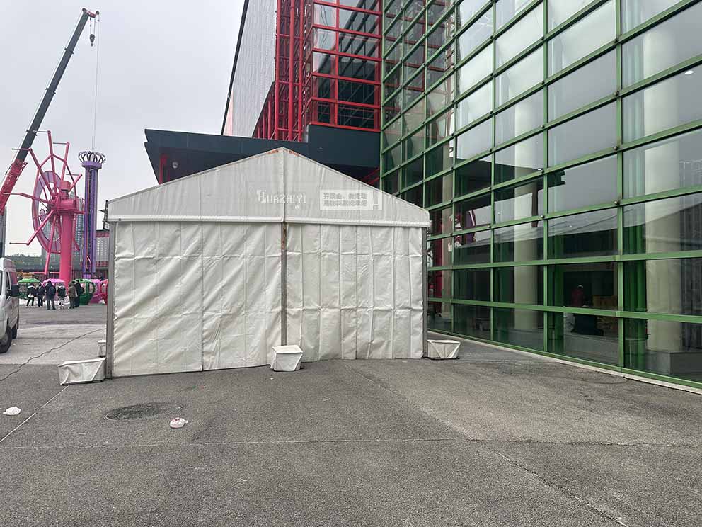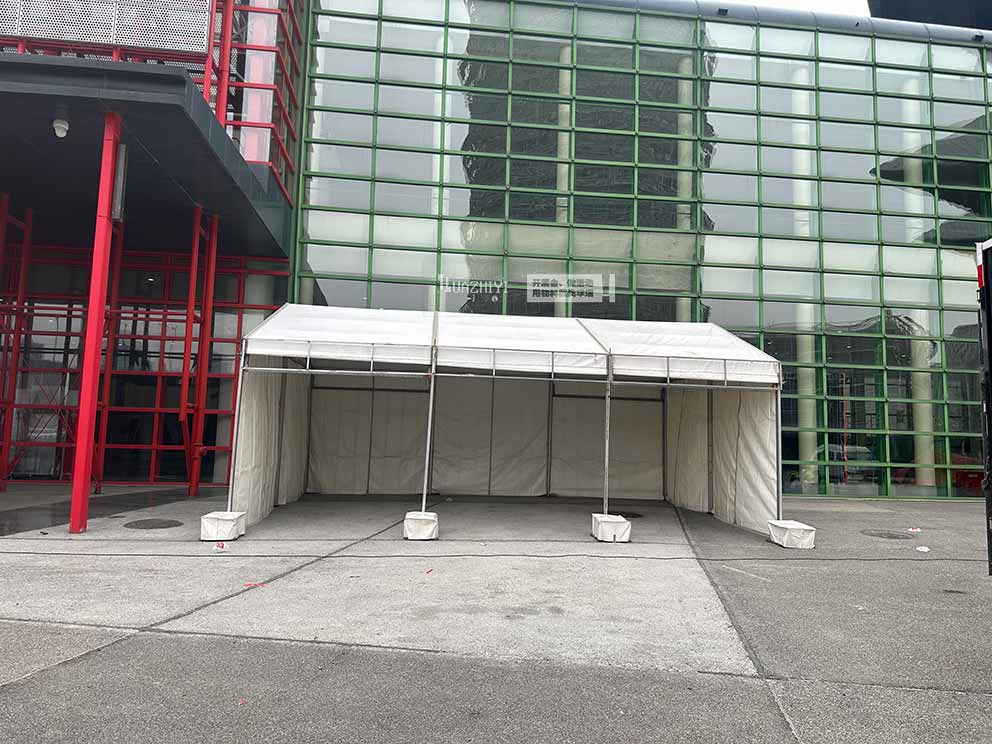 水泥地、瀝青地等硬化場地硬度高,地釘難以打入,此時地釘并非必需,需用其他固定方式替代。鶴壁篷房出租會根據篷房類型選擇替代方案:對于小型折疊帳篷,采用加重底座固定,每個底座重量15-20公斤,通過螺栓與篷房立桿連接,直接放置在硬化地面即可;對于大跨度人字形篷房,則采用膨脹螺栓固定,在篷房底座預設的螺栓孔處打入膨脹螺栓,將篷房與地面牢牢鎖定。